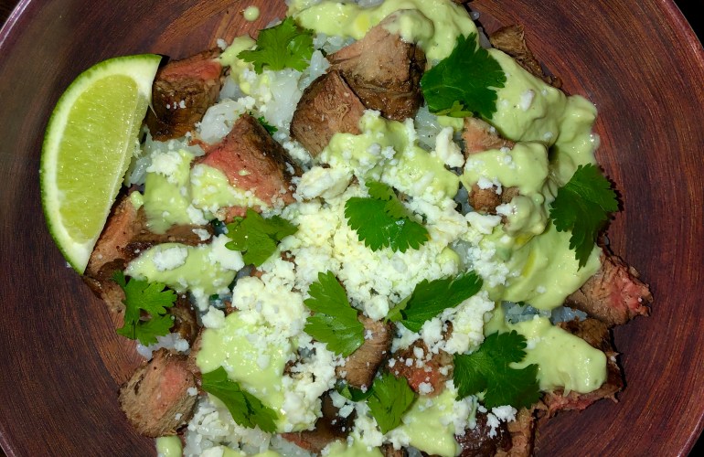 Southwestern Steak Bowl with Home-Made Avocado Lime Crema